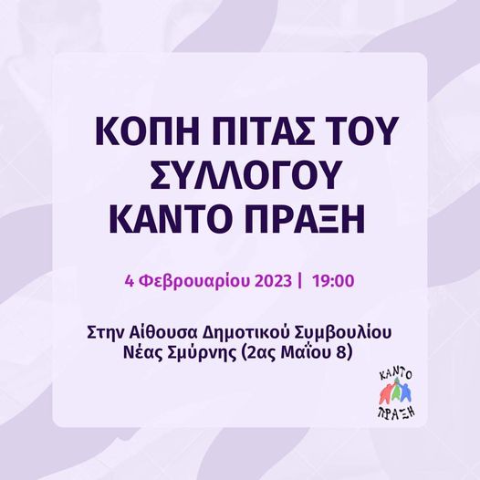 Όπως κάθε χρόνο έτσι και φέτος σας προσκαλούμε στη κοπή πίτας του Συλλόγου Κάντο Πράξη.