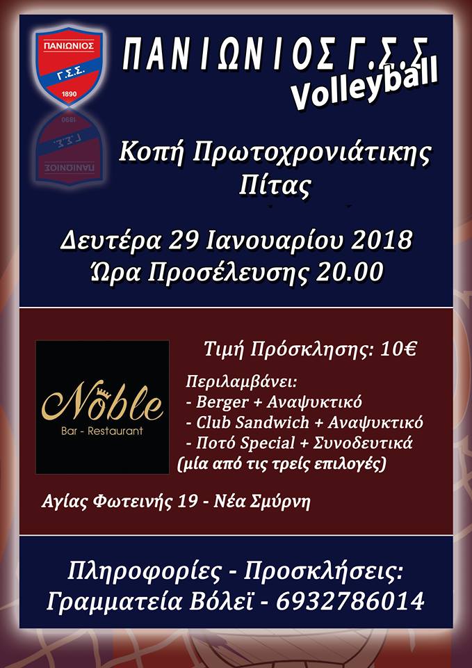 Πρόσκληση στην κοπή της Πρωτοχρονιάτικης Πίτας του Βόλλευ του Πανιωνίου