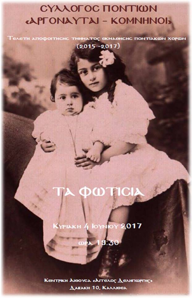 Πρόσκληση στην Τελετή αποφοίτησης τμήματος εκμάθησης ποντιακών χορών (2015 -2017) του Συλλόγου Ποντίων "Αργοναύται - Κομνηνοί"