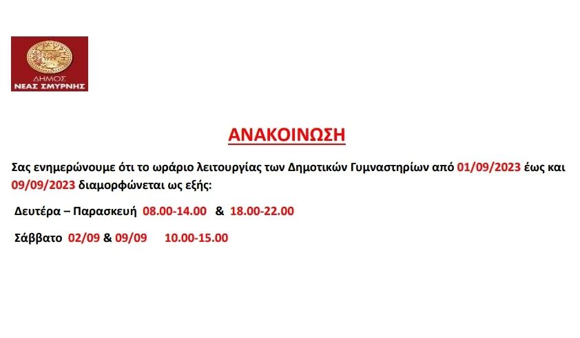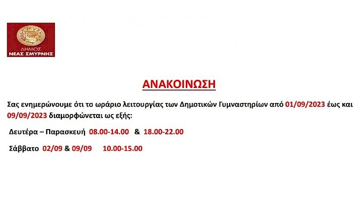 Προσωρινή Αλλαγή ωραρίου Δημοτικών Γυμναστηρίων