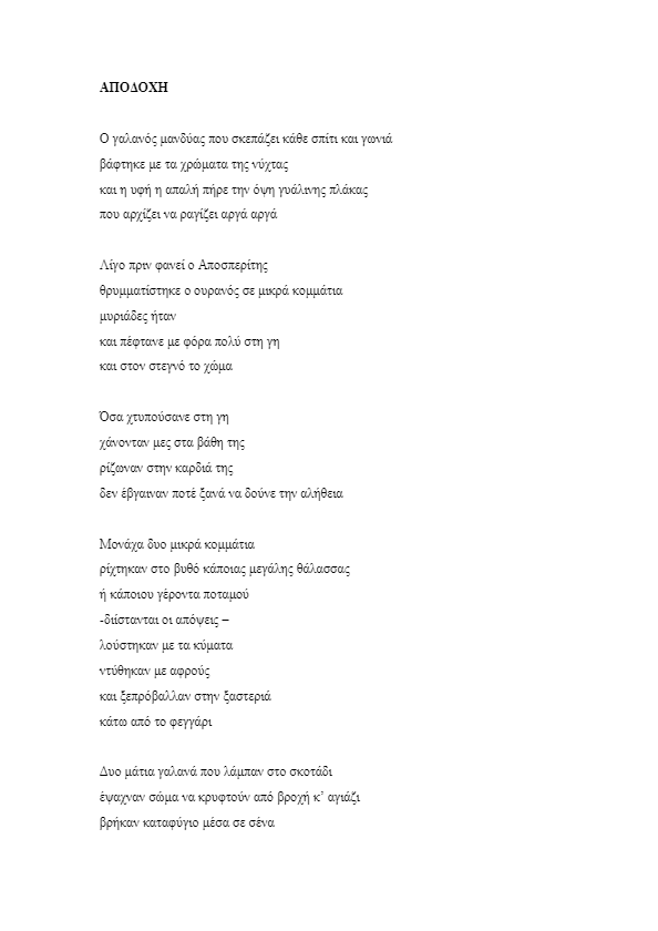 Ακολουθεί το βραβευμένο ποίημα