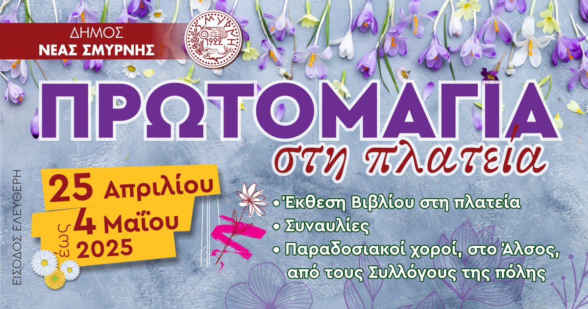 Μ’ ένα πλούσιο πρόγραμμα εκδηλώσεων που ξεκινούν στις 25 Απριλίου και ολοκληρώνονται στις 4 Μαΐου υποδέχεται ο Δήμος Νέας Σμύρνης την φετινή Πρωτομαγιά.