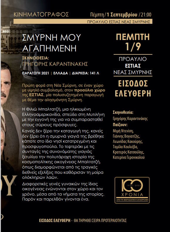 ΤΗΝ ΤΑΙΝΙΑ ΣΜΥΡΝΗ ΜΟΥ ΑΓΑΠΗΜΕΝΗ ΤΗΣ ΜΙΜΗΣ ΝΤΕΝΙΣΗ ΜΕ ΕΛΕΥΘΕΡΗ ΕΙΣΟΔΟ ΕΞΑΣΦΑΛΙΣΕ ΑΠΟΚΛΕΙΣΤΙΚΑ ΓΙΑ ΤΗΝ ΠΟΛΗ ΜΑΣ Ο ΠΟΛΙΤΙΣΤΙΚΟΣ ΟΡΓΑΝΙΣΜΟΣ