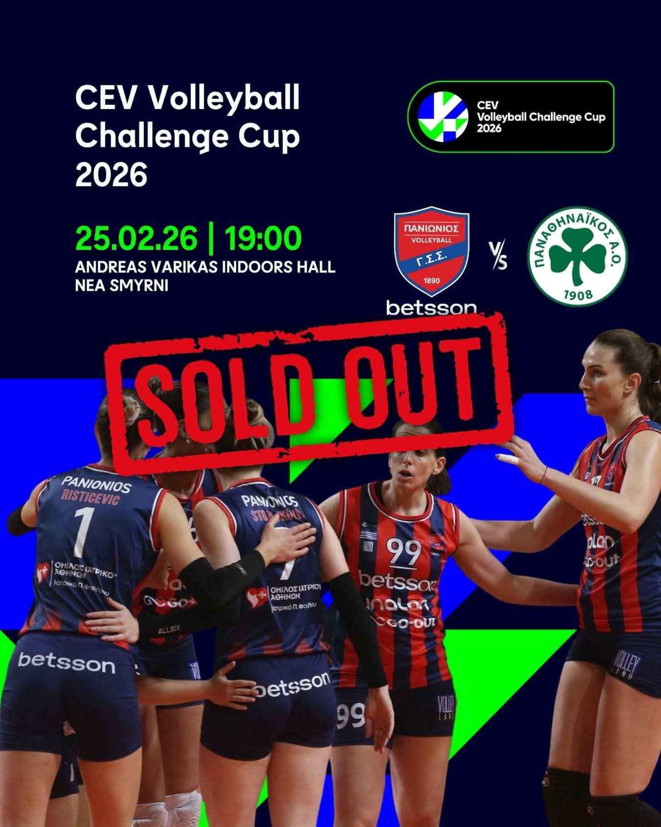 "Μέσα σε 45 λεπτά εξαντλήθηκαν τα εισιτήρια του εντός έδρας αγώνα με αντίπαλο τον Παναθηναϊκό (25/2, 19:00) για τη ρεβάνς της ημιτελικής φάσης του CEV Challenge Cup.