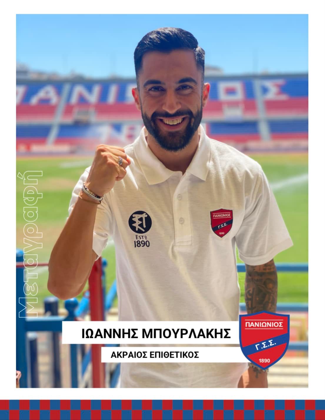 "Η Διοικούσα επιτροπή του Πανιώνιου Γ.Σ. Σμύρνης ανακοινώνει την απόκτηση του ποδοσφαιριστή Γιάννη Μπουρλάκη.