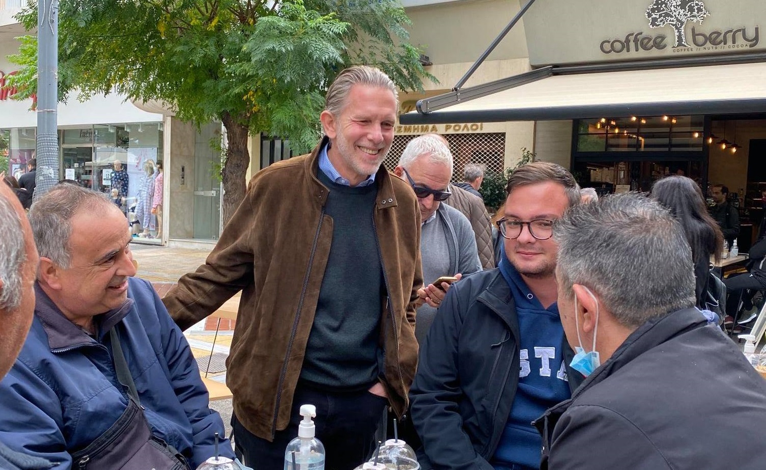 Στη Νέα Σμύρνη ο υποψήφιος για την ηγεσία του Κινήματος Αλλαγής Παύλος Γερουλάνος.
