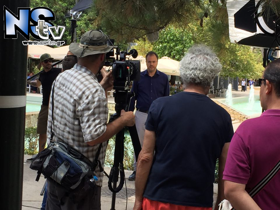 Ο από 4 Μαίου νέος Υπουργός Τουρισμού Θανάσης Θεοχαρόπουλος βρέθηκε σήμερα στην πλατεία Νέας Σμύρνης για τις ανάγκες βίντεο-συνέντευξής του.