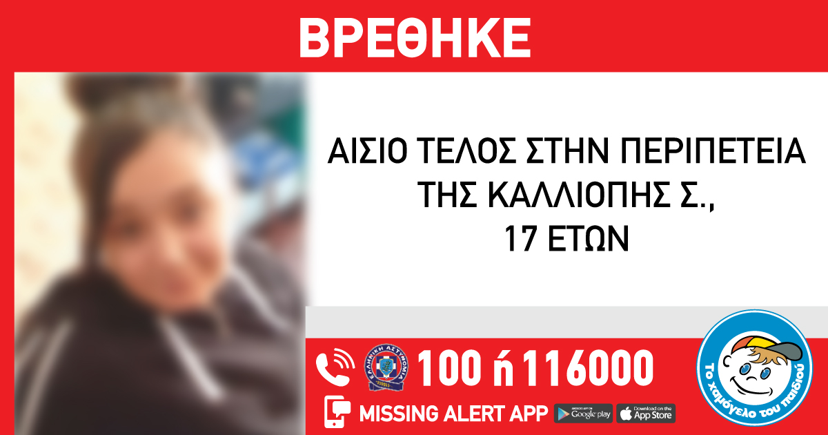 Η περιπέτεια της Καλλιόπης Σ., 17 ετών, έληξε σήμερα το πρωί δίνοντας τέλος στην αγωνία των ανθρώπων που την αναζητούσαν.