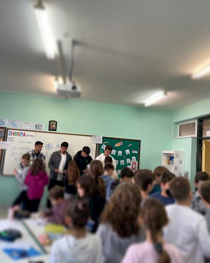 Συγκεκριμένα, οι Πίσπας, Ζούλιας, Καρούσος και Βαλαβανίδης επισκέφθηκαν το σχολείο προκαλώντας ενθουσιασμό στους νεαρούς μαθητές.