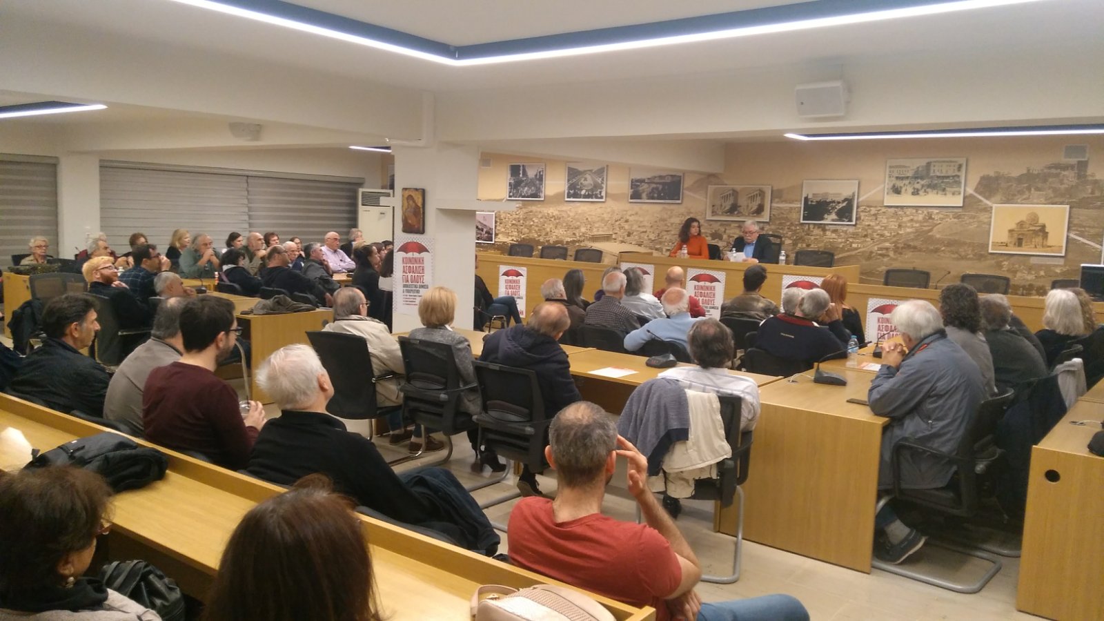 Με επιτυχία διοργανώθηκε η συγκέντρωση των Κομματικών Οργανώσεων Ν.Σμύρνης του ΚΚΕ την Κυριακή 24 Νοέμβρη στην αίθουσα του δημοτικού συμβουλίου με θέμα «Η νέα αντιλαϊκή επίθεση στην κοινωνική ασφάλιση που σχεδιάζουν κυβέρνηση και επιχειρηματικοί όμιλοι και οι θέσεις του ΚΚΕ».