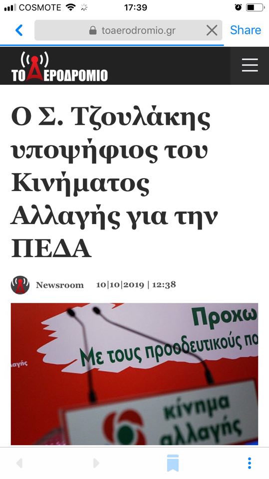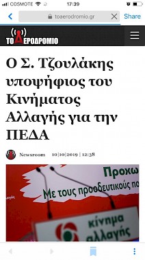 Πάντα σύμφωνα με το ρεπορτάζ των δύο ιστοσελίδων και πιό συγκεκριμένα σύμφωνα με ένα απόσπασμα από το www.toaerodromio.gr :''[...]Ο δήμαρχος Ν. Σμύρνης Σταύρος Τζουλάκης επιλέχθηκε από το Κίνημα Αλλαγής να ηγηθεί του αυτοδιοικητικού συνδυασμού του στις εκλογές για την ανάδειξη νέας ηγεσίας στην Περιφερειακή Ένωση Δήμων Αττικής (ΠΕΔΑ).