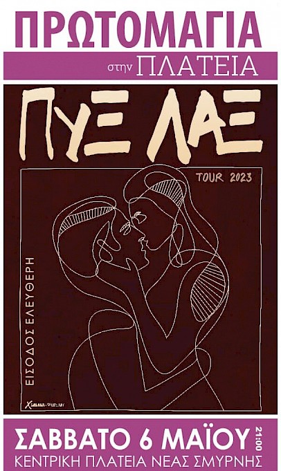 Στο πλαίσιο των εκδηλώσεων του Δήμου Νέας Σμύρνης για την Πρωτομαγιά , το Σάββατο 6 Μαΐου, στις 9.00 το βράδυ, θα διεξαχθεί η συναυλία των Πυξ Λαξ, στην Κεντρική πλατεία, της πόλης.