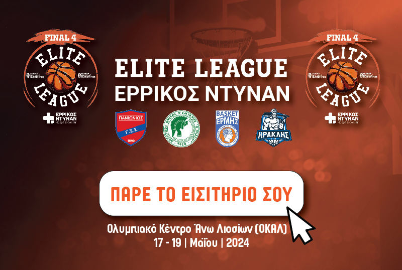 "Η συναρπαστική σεζόν της Elite League Ερρίκος Ντυνάν φτάνει στο αποκορύφωμά της. Το Ολυμπιακό Κέντρο Άνω Λιοσίων στις 17 και 19 Μαΐου φιλοξενεί το Final 4, που θα κρίνει τον πρωταθλητή και τα δύο εισιτήρια ανόδου στην Basket League.