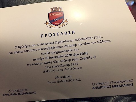 Τη Δευτέρα 20 Ιανουαρίου στις 19:00 το απόγευμα, η οικογένεια του Πανιωνίου κόβει την πίτα της για το 2020.