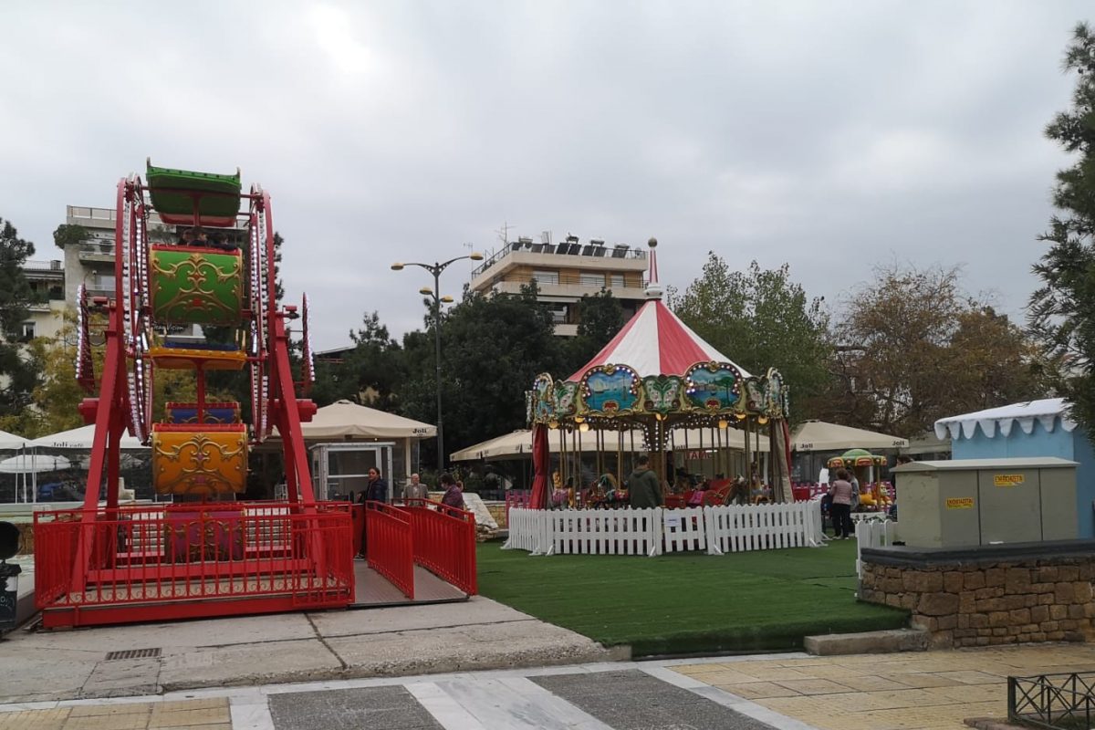 Το χριστουγεννιάτικο πάρκο που έχει στηθεί στην πλατεία Νέας Σμύρνης περιμένει μικρούς και μεγάλους με carousel, τρενάκι και άλλα παιχνίδια.