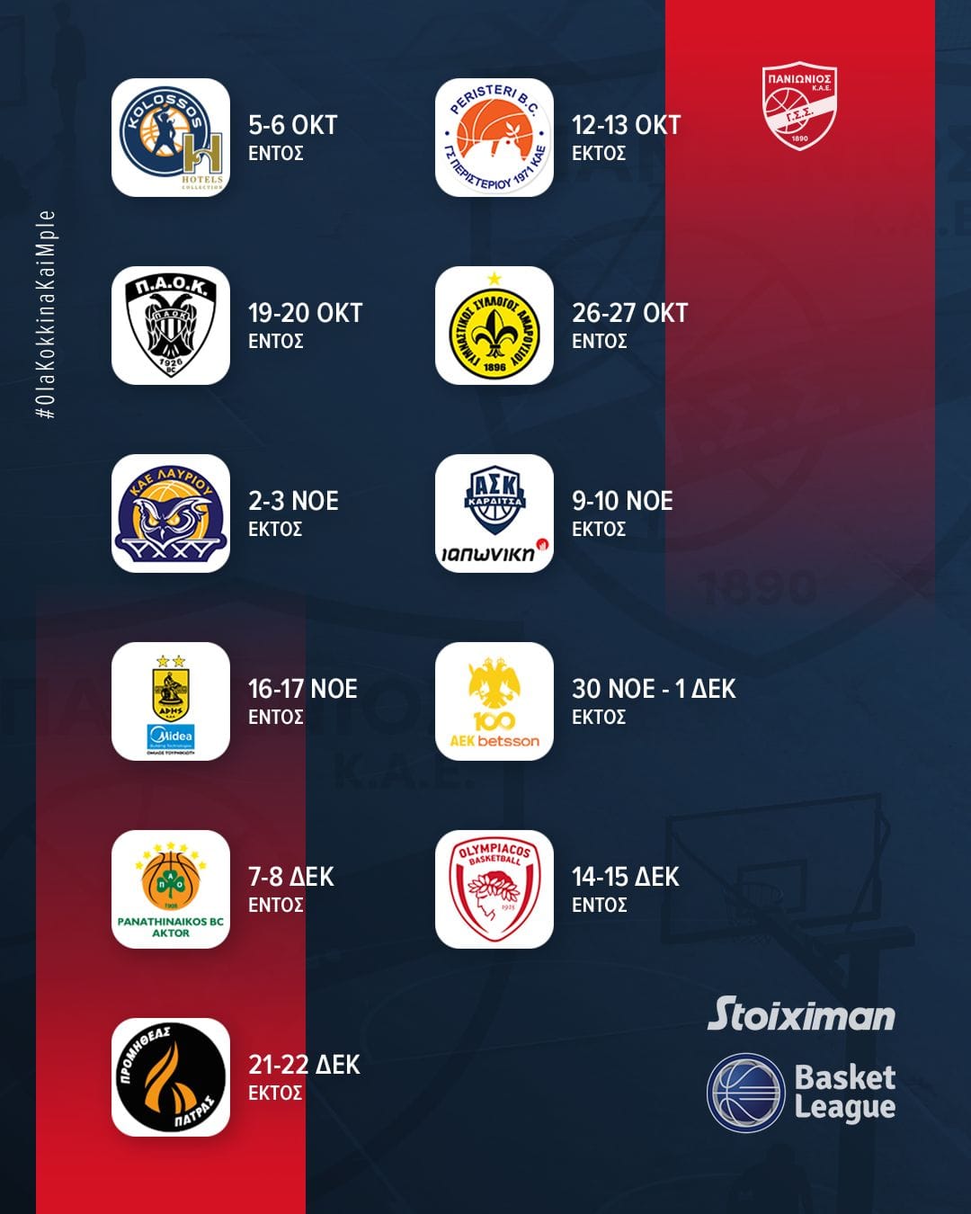 Το πρόγραμμα του Πανιωνίου στο νέο πρωτάθλημα της Basket League (pic)