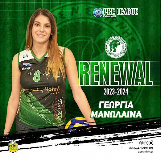 Η διοίκηση του τμήματος βόλει του Μίλωνα ανακοινώνει την ανανέωση της συνεργασίας με τη Γεωργία Μανώλαινα για το γυναικείο τμήμα βόλεϊ, την αγωνιστική σεζόν 2023-2024.