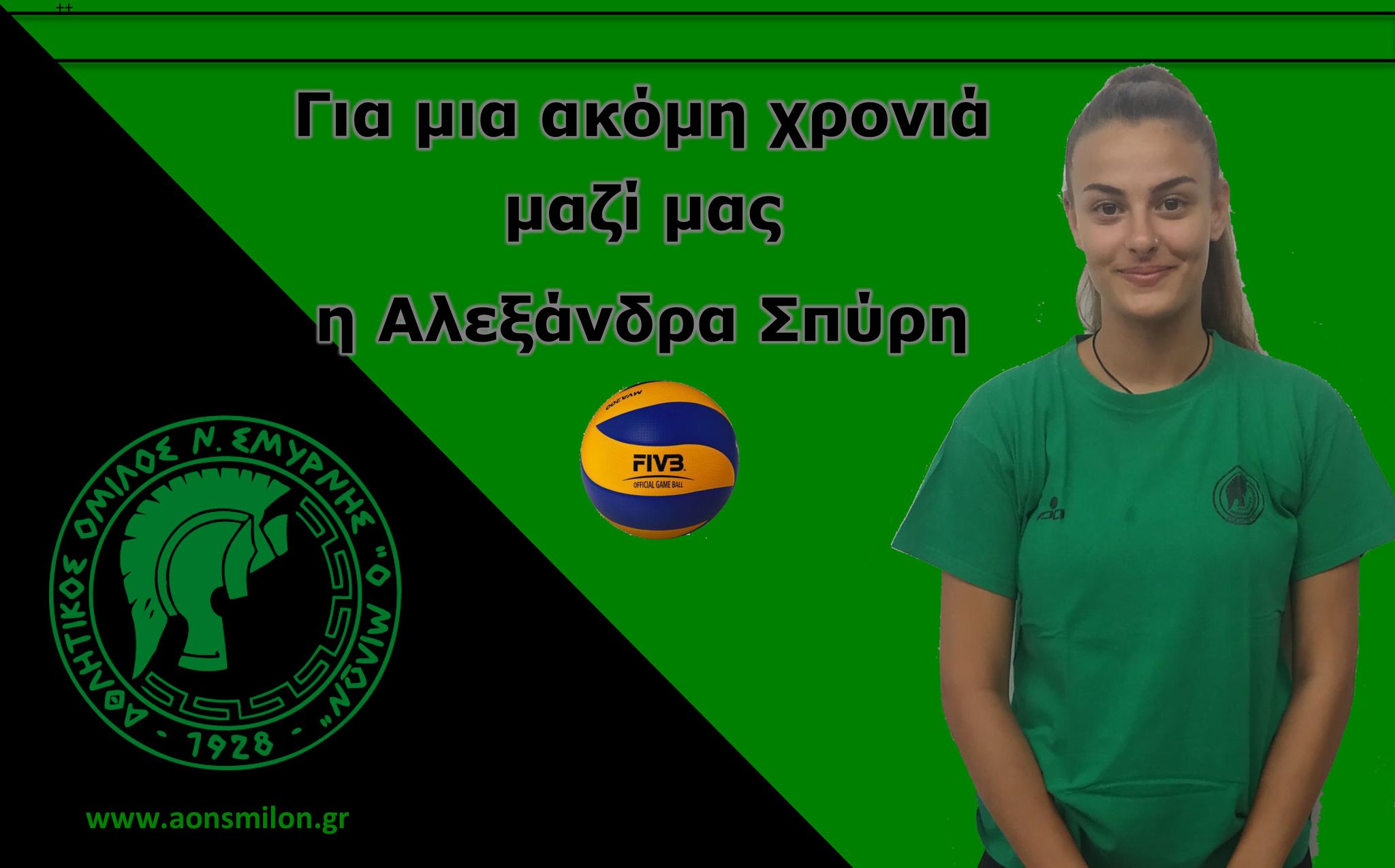 Την πρώτη της ανανέωση για την επόμενη χρονιά ανακοίνωσε η γυναικεία ομάδα βόλεϊ του Μίλωνα, με μια αθλήτρια που προέρχεται από τα φυτώρια του συλλόγου, την Αλεξάνδρα Σπύρη, να συνεχίζει για άλλη μια σεζόν υπό τις οδηγίες του Γιώργου Δεναξά: