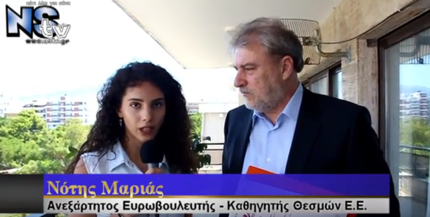 Ο Νότης Μαριάς, Ανεξάρτητος Ευρωβουλευτής, Επικεφαλής του Πολιτικού Κινήματος «Αντιμνημονιακοί Πολίτες» και Καθηγητής Θεσμών της ΕΕ του Πανεπιστημίου Κρήτης, δήλωσε ότι: «αυτό που υπάρχει δεν έχει καμία σχέση με την ΕΕ. Είναι μια Γερμανική Ευρώπη, αποικιοκρατική κατάσταση των Γερμανών και αυτό πρέπει να σταματήσει. Επομένως ο προβληματισμός μου αφορά σκέψεις και αγωνίες όλου του ελληνικού λαού και των πολιτών της ΕΕ γιατί δεν μπορούμε να έχουμε τόση φτώχεια, ανεργία και πείνα» τονίζοντας ότι: «εμείς πρεσβεύουμε μια απάντηση με ένα πατριωτικό πρόσημο που θα αμφισβητεί την άνιση κατανομή του πλούτου».