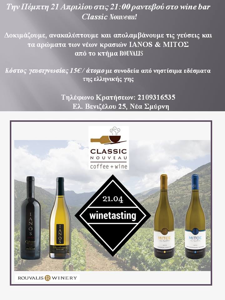 Wine Tasting ROUVALIS Winery στο Classic Nouveau Cafe-Wine Bar στην Νέα Σμύρνη