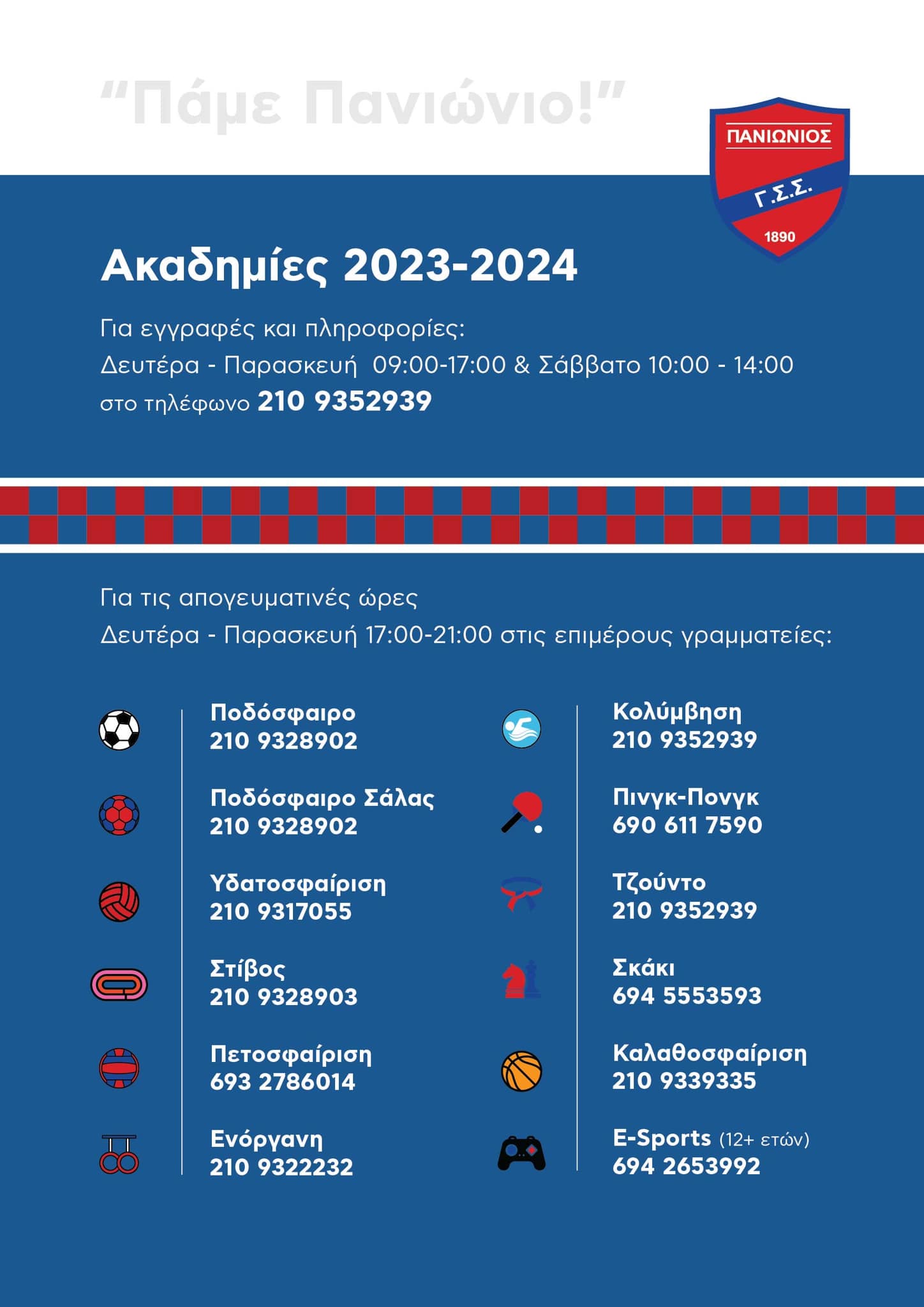 Με το σύνθημα "Πάμε Πανιώνιο", τη Δευτέρα 4 Σεπτεμβρίου ξεκινούν οι εγγραφές στις ακαδημίες του Ιστορικού για τη σεζόν 2023-24.