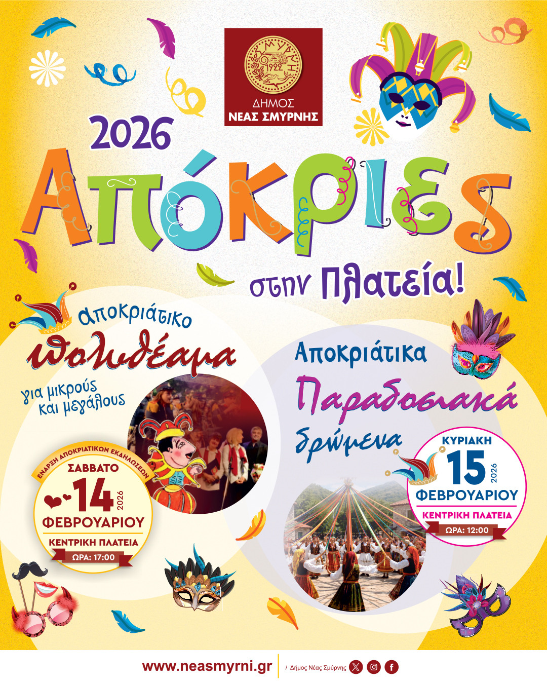 Διαβάστε την ενημέρωση του Δήμου Νέας Σμύρνης για τις αποκριάτικες εκδηλώσεις που ξεκινούν το επόμενο Σάββατο (14/2):