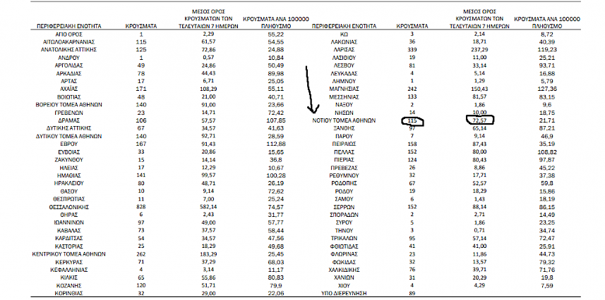 Στο "κόκκινο" η Αττική όπου τα νέα κρούσματα έγραψαν 4ψήφιο αριθμό (1.021), η Θεσσαλονίκη με 828 νέες μολύνσεις, και η Λάρισα με 339.