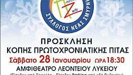 Πρόσκληση στην Κοπή της Πρωτοχρονιάτικης Πίτας του Συλλόγου Νέας Σμύρνης 'Ποιότητα Ζωής'