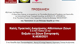Πρόσκληση στην ημερίδα με τίτλο «Καλές Πρακτικές Διαχείρισης Αδέσποτων Ζώων που διοργανώνει ο Δήμος Νέας Σμύρνης