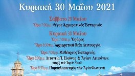 Την Κυριακή 30 Μαϊου γιορτάζει ο Ιερός Ναός της Αγίας Φωτεινής