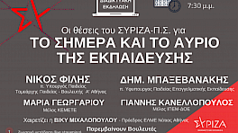 Εκδήλωση ΝΕ Νότιας Αθήνας: ΟΙ ΘΕΣΕΙΣ ΤΟΥ ΣΥΡΙΖΑ – ΠΣ ΓΙΑ ΤΟ ΣΗΜΕΡΑ ΚΑΙ ΤΟ ΑΥΡΙΟ ΣΤΗΝ ΕΚΠΑΙΔΕΥΣΗ