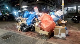 Σκουπίδια από Pink Woman, Βενέτη καταστήματα γυναικείων υποδημάτων, καφετεριών και άλλων γεμίζουν τον ποδηλατόδρομο και τον δρόμο