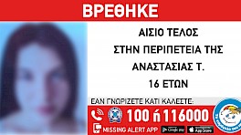 ΑΙΣΙΟ ΤΕΛΟΣ ΣΤΗΝ ΠΕΡΙΠΕΤΕΙΑ ΤΗΣ ΑΝΑΣΤΑΣΙΑΣ Τ., 16 ΕΤΩΝ, #MISSING ALERT