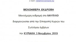 Μονοήμερη εκδρομή Επιτροπής Κυριών Συλλόγου Ιμβρίων στο Ναύπλιο - Κυριακή 3/11/2019