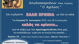 Tην Κυριακή 13 Ιανουαρίου κόβει την πίτα του ο Πολιτιστικός Σύλλογος Αιτωλοακαρνάνων Νέας Σμύρνης ''Ο Αχελώος''