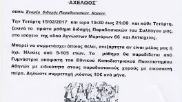 Μαθήματα Παραδοσιακών χορών από τον Σύλλογο Αιτωλοακαρνάνων Ν.Σμύρνης